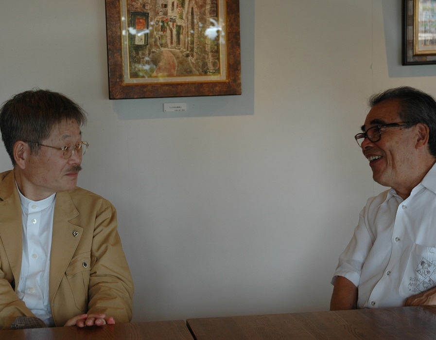 塚越先生(右)と彩美画廊専務、大北良彦(左)