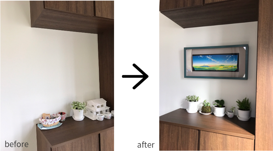 コロナ禍でおうち時間が増え、気持ちが沈みがちですが、一枚の絵を飾ることで心地良い空間が生まれ、楽しい想像の世界が広がりました。