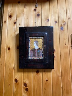 まだまだ絵を掛けたばかりなので、何とも言い難いのですが、額、マットの布も重い感じの中に品があり、初めて見たときから私の心に響きました