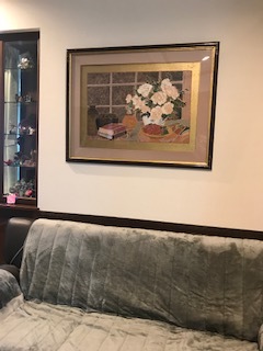 と考えておられて、フラッと立ち寄ったアルチザンで「家での試着の提案」を受入れて下さり、色々試して頂いた後玄関にプライス先生、リビングにエレン・ガン先生の作品を掛けて頂きました。