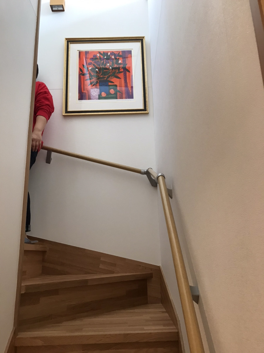 お花が大好きな奥様が、お部屋もお花で飾りたいってご希望で、今かけておられる富士山の絵を階段登った所に移動